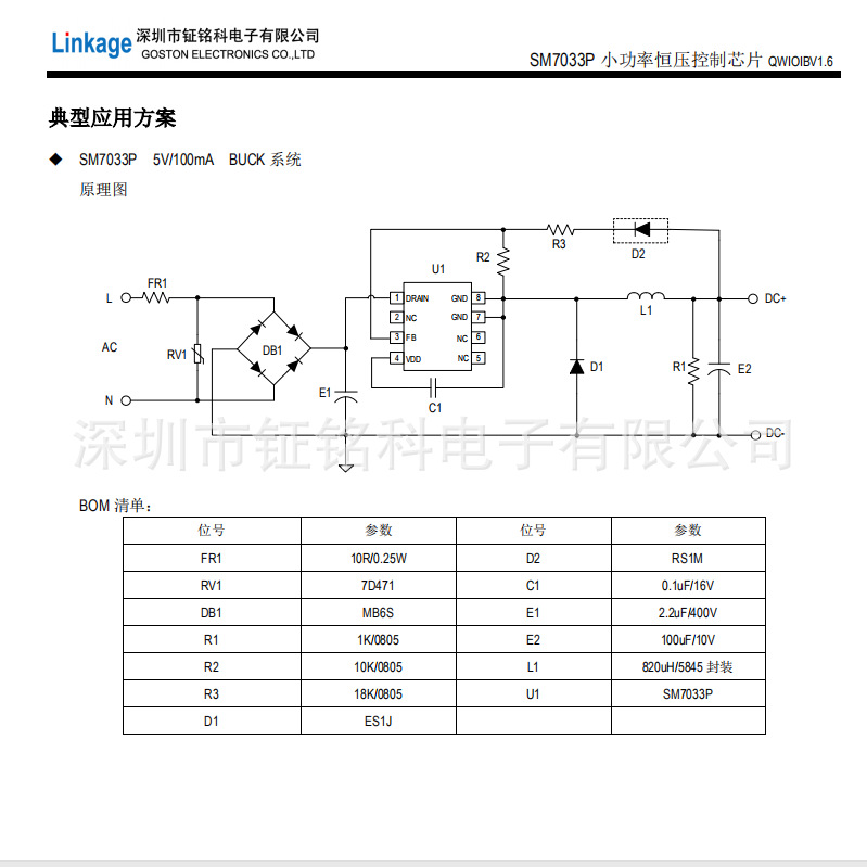 SM7035 是一款恒压控制芯片,内置 CS 电阻。全电压范围内恒压精度小于± 3%,外围元件少,方案成本低。