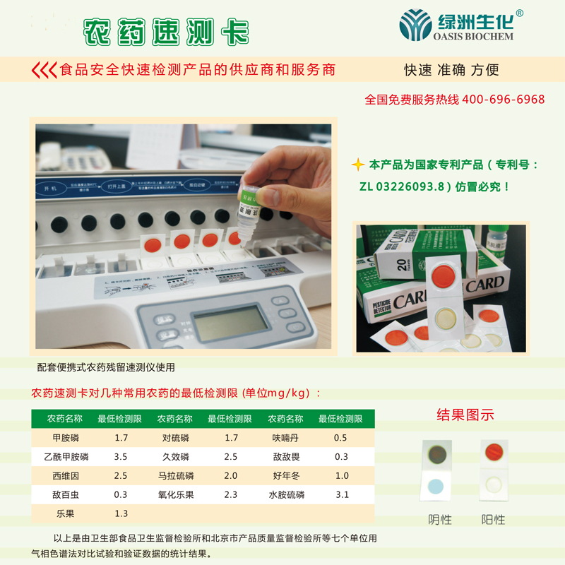 广州绿洲生化果蔬农药残留检测卡 一盒20张,一箱60盒,快速检测农药残留阴性阳性。