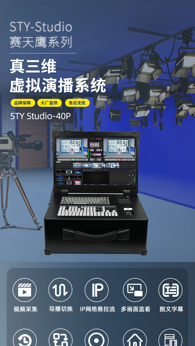 赛天鹰STY Studio-40P虚拟演播室搭建 导播切换智能抠像真三维场景