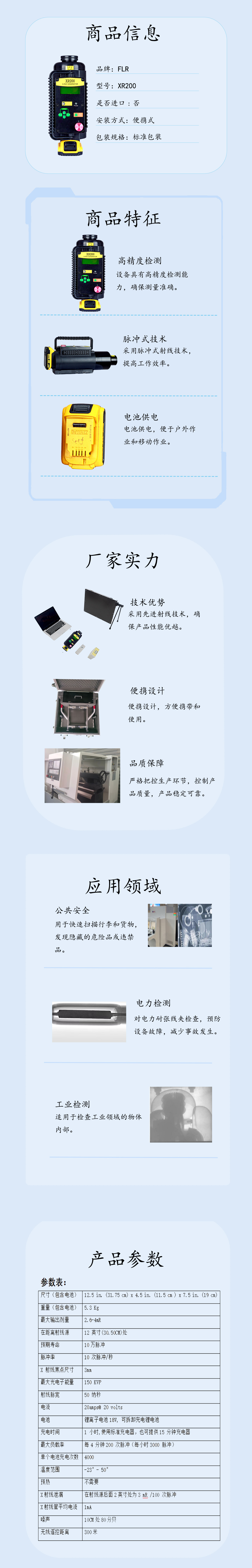 XR200 是一个150KV,单独包装的脉冲式X 射线源,用于企业安全和工业人员对各种