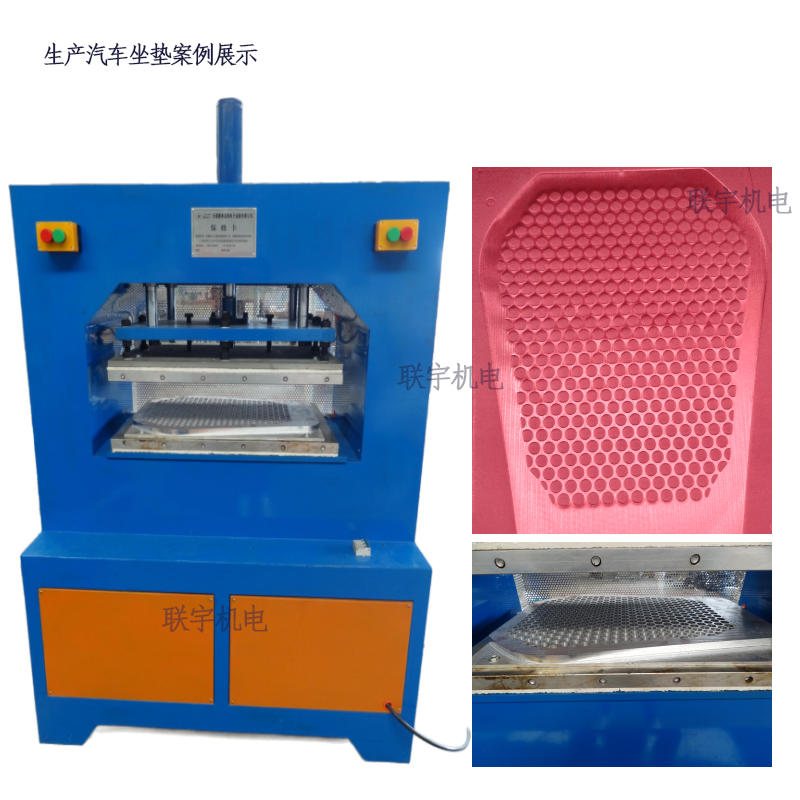 汽车面料海绵坐垫压花机凹凸立体花纹高周波热压机是一种设备,用于在汽车海绵坐垫、靠垫等表面压制各种花纹、图案或纹理,提升产品的美观性和舒适性。以下是关于该设备的详细介绍: