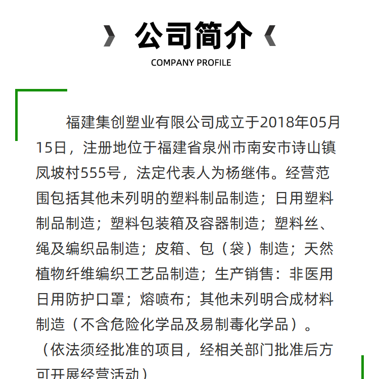 地址: 中国 福建 泉州市诗山镇环城路555号集创工业园