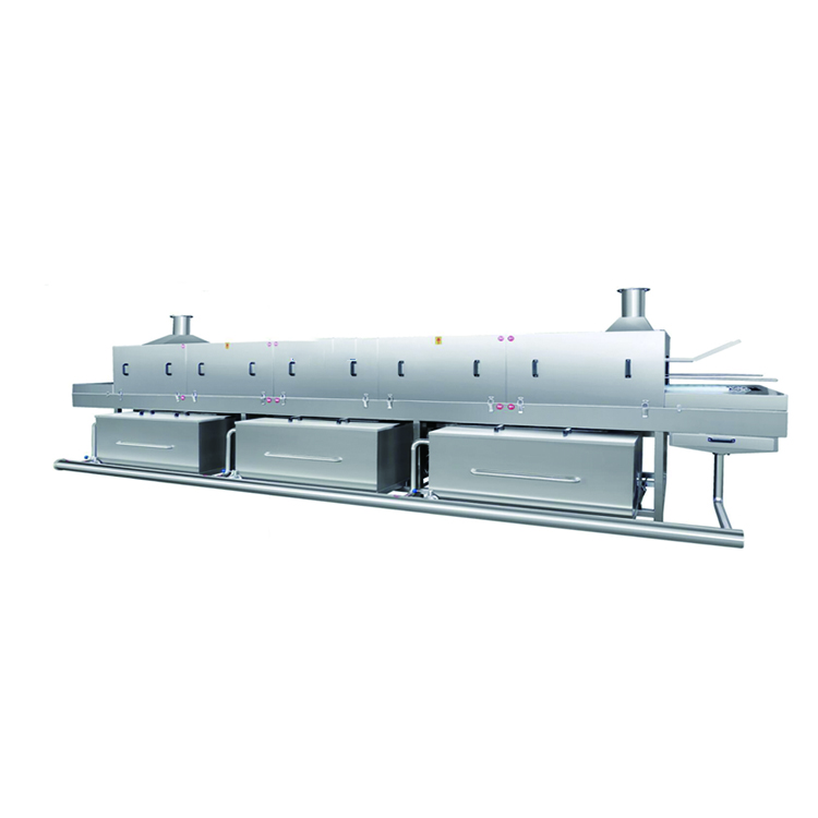 本机开启后,由人工送料至喷淋清洗机链条轨道或由输送连接自动进料,行碱液喷淋,然后再进行清水循环喷淋。三组各自独立,外置循环水箱,过滤网可方便抽取。周转箱冲洗进出口由人工操作。