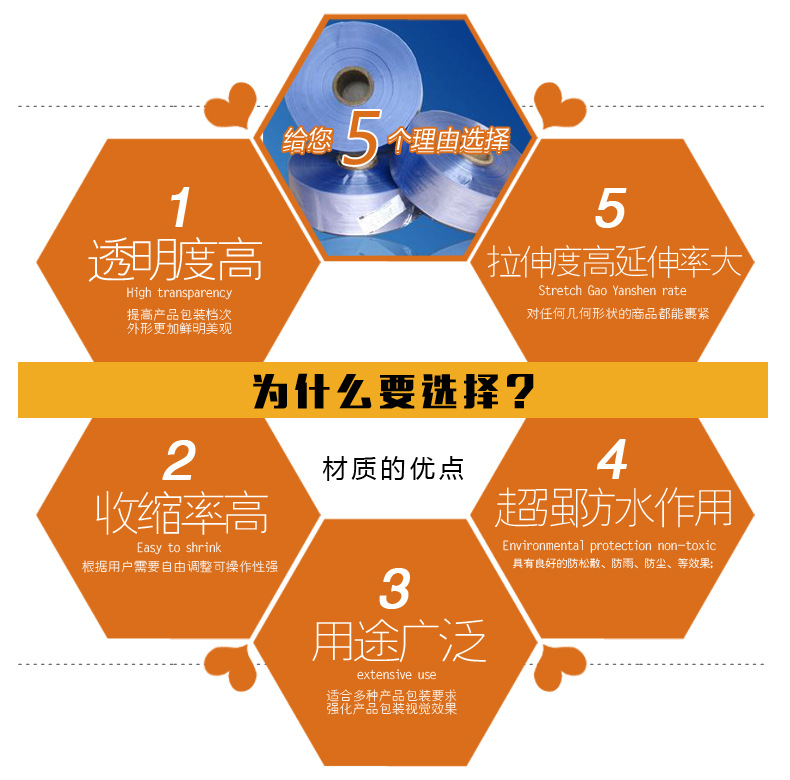 在包装过程中收缩率稳定,均衡,包装完成后边角柔软,有韧性,抗低温,收缩温度低,收缩方便!不会发硬,有效保护被包装物品。