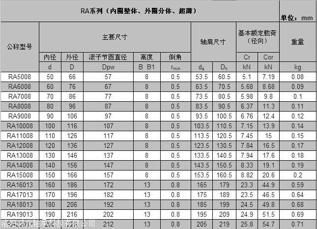 产品名称:RA系列交叉圆柱滚子轴承(内圈整体、外圈分体、超薄)