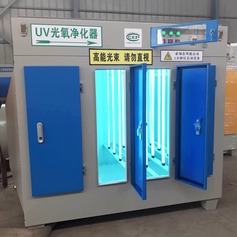 光氧废气净化器利用高能高臭氧UV紫外线光束分解空气中的氧分子产生游离氧,即活性氧,因游离氧所携正负电子不平衡所以需与氧分子结合,进而产生臭氧。