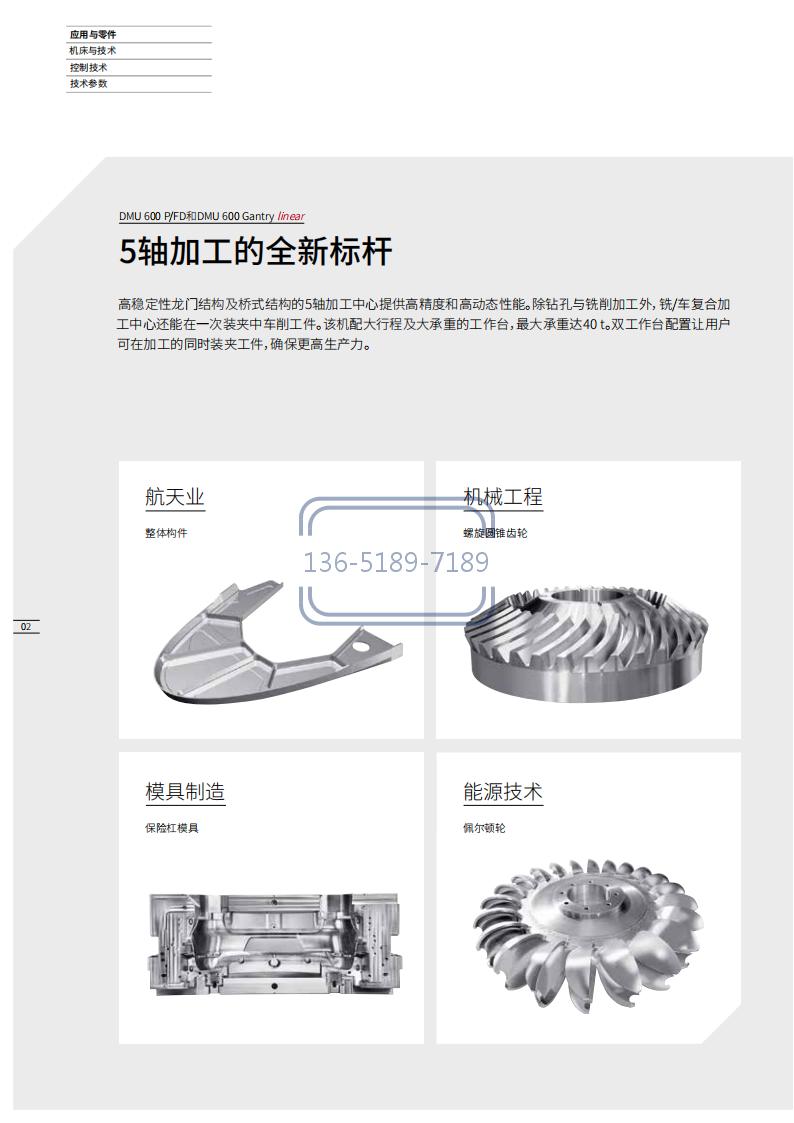 ?产品与技术:? 公司产品线包括车铣复合机型、五轴联动机床等高精度设备,例如DMU系列加工中心具备高刚性结构和先进冷却系统,精度可达0.01毫米;数控系统多采用西门子或海德汉技术,支持复杂工件加工。?14