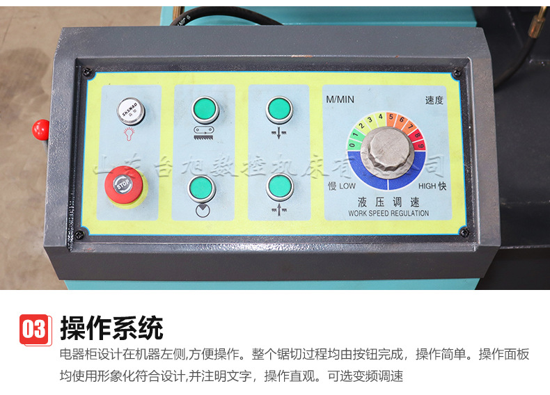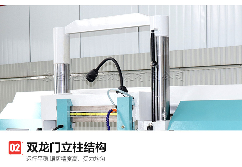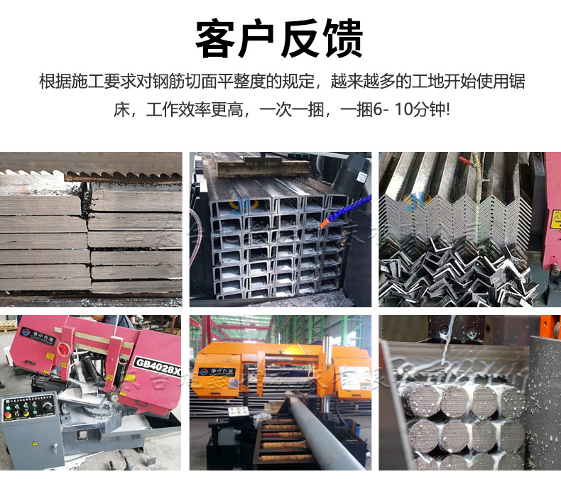 5、采用进口、薄片的比金属带锯条,因此。切口窄,耗材少,所需动力小,是大、中型企业的理想设备。