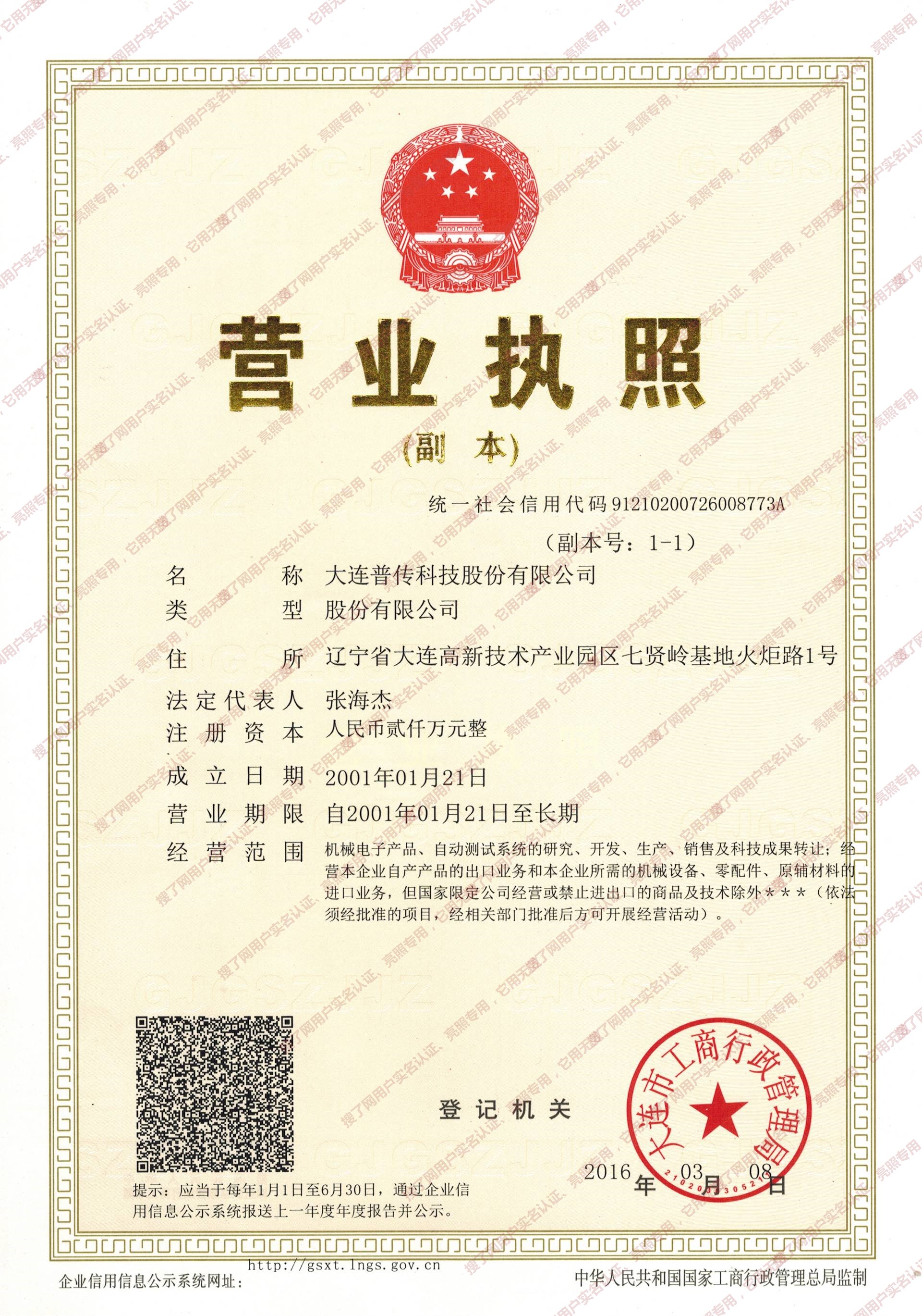 大连普传科技股份有限公司