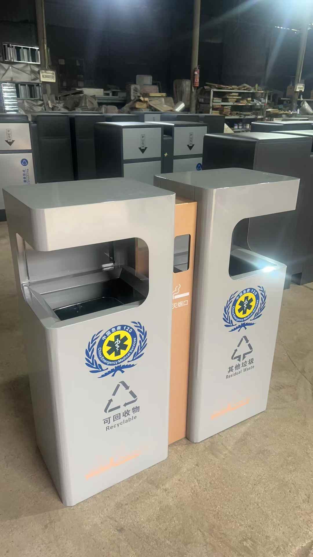 不锈钢材质垃圾桶,整体板材采用氩弧焊焊接成型,三遍打磨,双分类果皮箱 适用于景区,街道,售楼部,市政道路等场所,板材厚度,颜色可根据要求定制生产,箱体可丝印LOGO