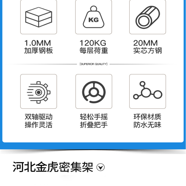 金虎柜业有限公司从事生产定做定制批发销售各种密集柜、密集架、手摇密集柜,档案室密集柜,手动密集架,智能密集架,电动密集架,病例密集架,会计凭证密集柜,财务密集架,货架,铁皮柜,储物柜、钢制柜,文件柜、抽屉柜,器械柜,玻璃柜,仪器柜,学生柜,不锈钢柜,图书架、阅览桌,仓储货架、上下床,学生课桌椅,餐桌椅,不锈钢餐具柜,智能存包柜,手机充电柜,保密柜、防磁柜、不锈钢信报箱,工具柜,不锈钢水杯柜,单警装备柜,消防柜,防爆器材柜,制式营具,智能柜、珠宝柜,不锈钢金库门、金库房,尾随门,联动门、枪库门等十几大系列产品。也可根据用户需求定制异型产品。