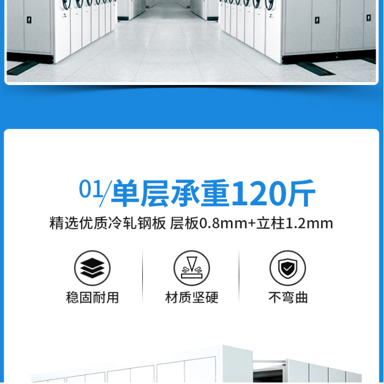 只是为了增加轨道档案密集柜的立方体数量,尝试在这两点上做更多的档案密集柜。这太可怕了。档案密集柜设计师将首先考虑两个方面,然后是房间。利用率化。如果客户对存储空间不满意,也可以在结构上进行调整,这是经销商无法做到的。
