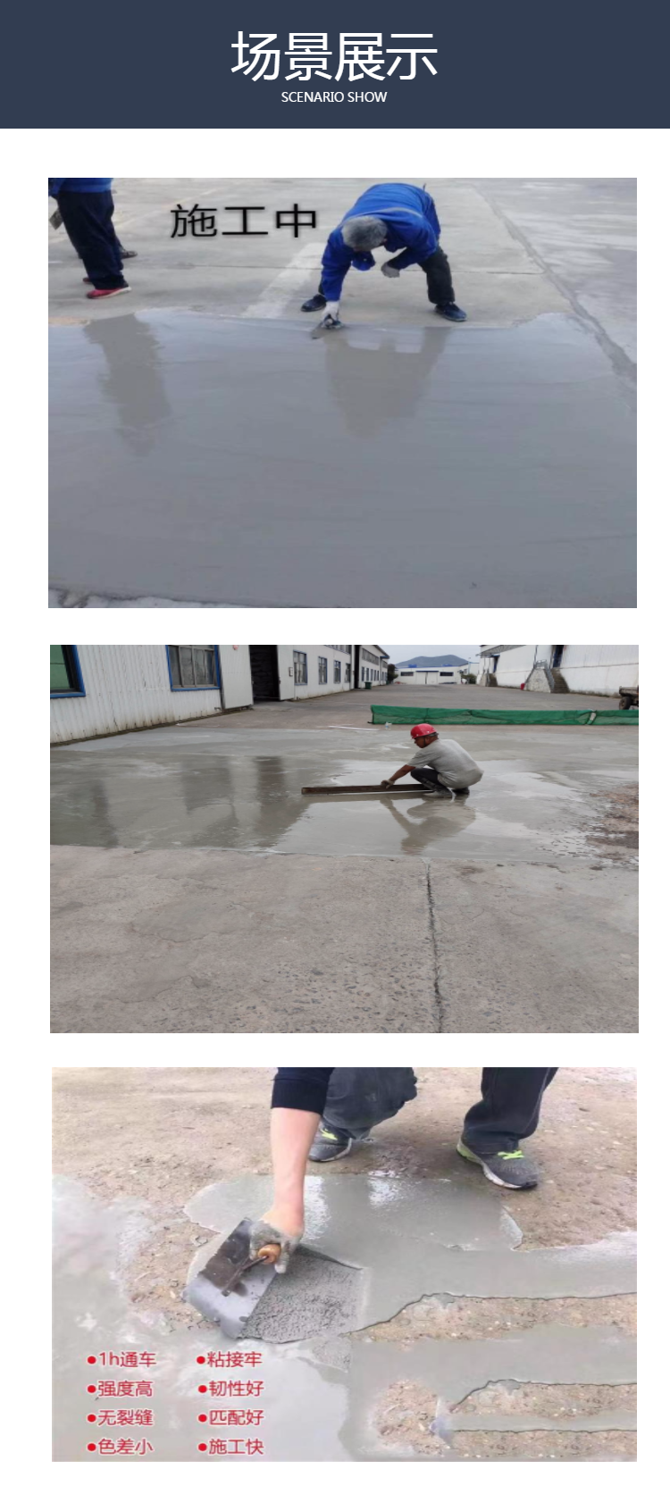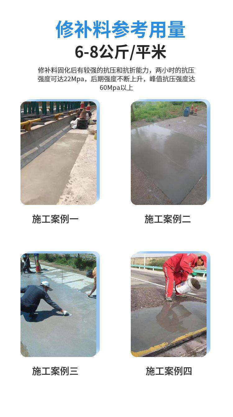 1、常温下快速固化,路面修补后2-3小时后便可开放交通。