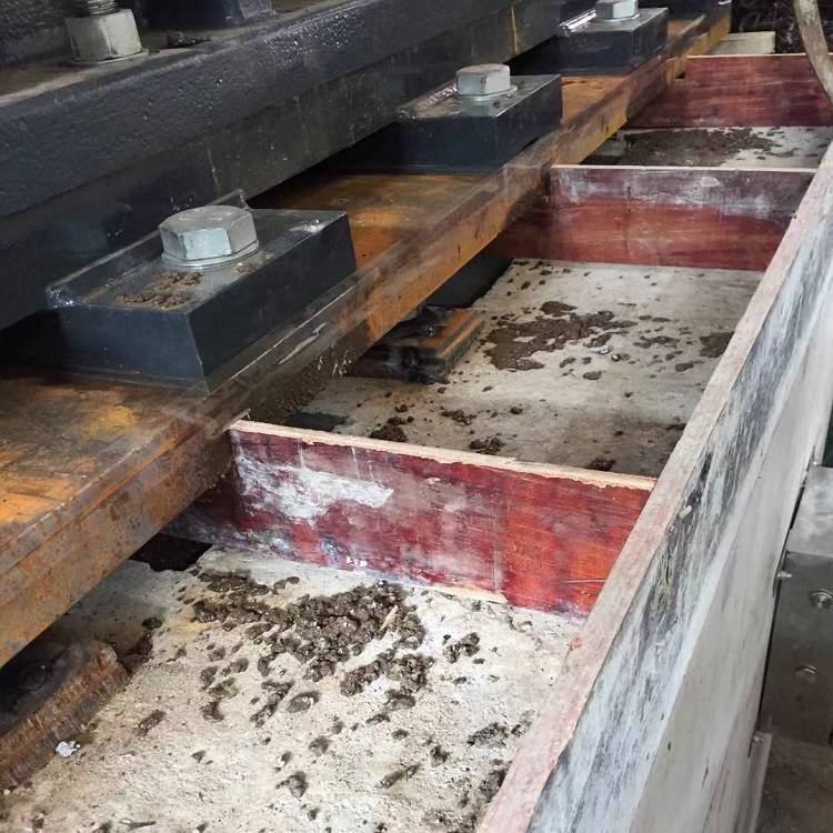6、待地脚螺栓孔灌浆材料达到规定强度后,紧固地脚螺栓,拆除支座临时连接板,安装支座密封围板。