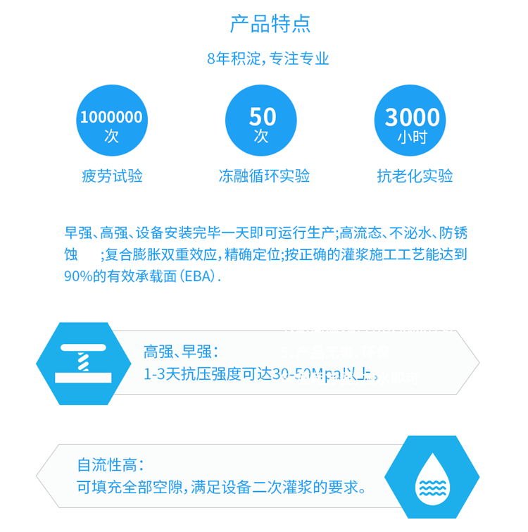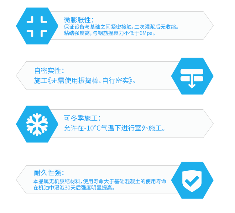 适用于各种预制梁架设的灌浆,桥梁支座底板与墩台支撑垫石之间的灌浆填充。
