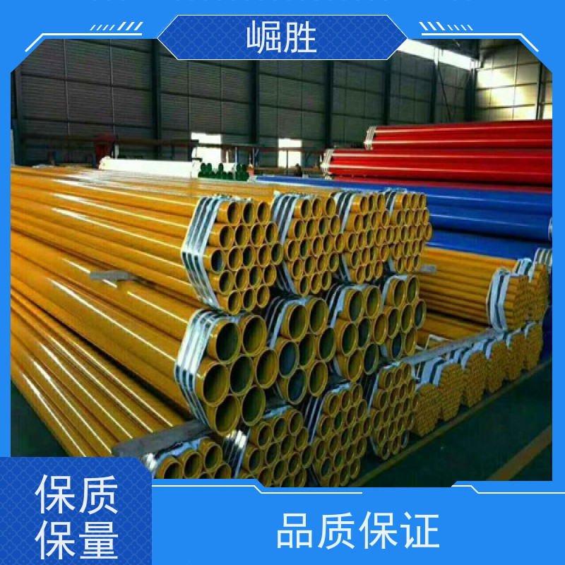 四川崛胜管业防腐钢管产品特点总结 # 1. 三油两布防腐钢管 特点:采用传统沥青防腐层与玻璃纤维布交替缠绕的"三油两布"工艺,形成致密复合防腐结构。其防腐层厚度达2 4mm,耐酸碱盐腐蚀性强,适用于地下潮湿环境;玻璃纤维布增强机械强度,抗土壤应力损伤;施工时可适应 30℃~70℃环境温度,性价比高,是市政排水、输油管道的经济型选择。 # 2. 衬塑复合钢管 特点:通过热滚塑工艺在钢管内壁复合PE/PP/PO等工程塑料层,实现物理隔离防腐。内衬层厚度2.5 4mm,耐80℃以下强腐蚀介质(如酸碱溶液); # 3. 环氧树脂/涂塑复合钢管 特点:采用静电喷涂或浸涂工艺形成200 500μm环氧树脂涂层,兼具化学防腐与环保优势。涂层附着力达1级(划格法),耐3%NaCl溶液浸泡500h无起泡;内外双涂层设计可同时抵御土壤腐蚀与介质侵蚀;通过GB/T5135.20消防认证,工作压力≤2.5MPa,是消防给水、矿山回填管道的优选,符合饮用水卫生标准(GB/T17219)。