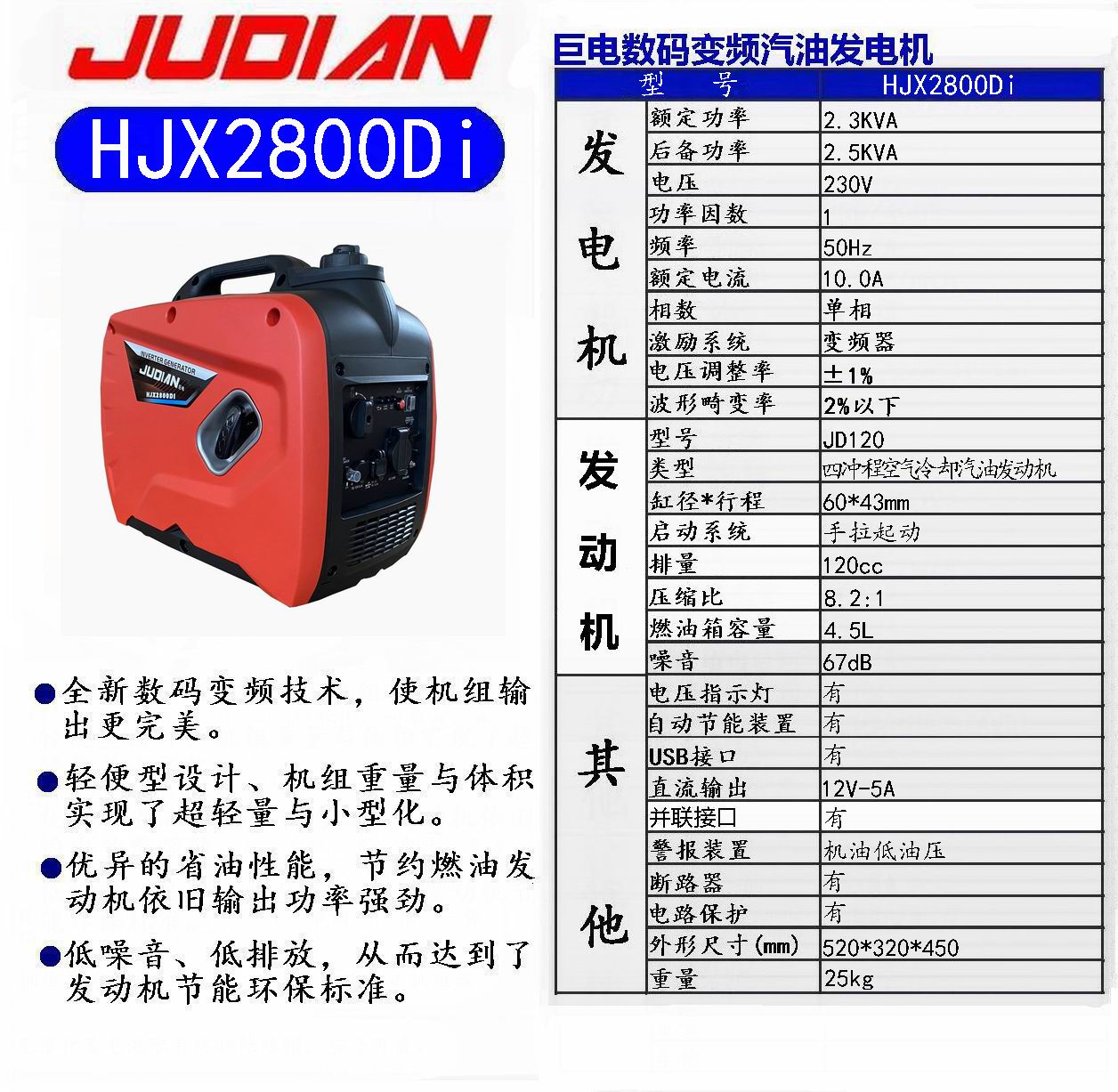 巨电便携式发电机HJX2800Di |