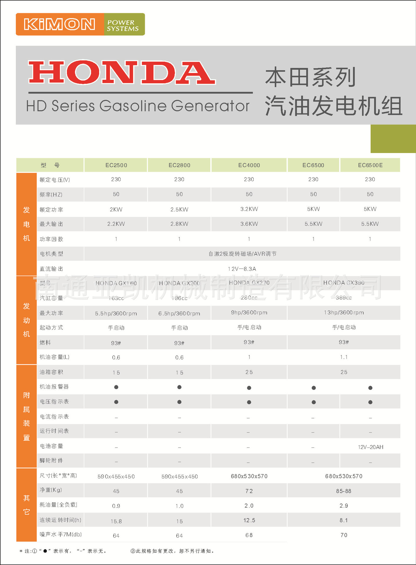 ★产品特征 本田EC2500是一款汽油发电机,它具有油耗低、可靠性强、性能稳定、故障率低等特点,受到广大客户的欢迎!
