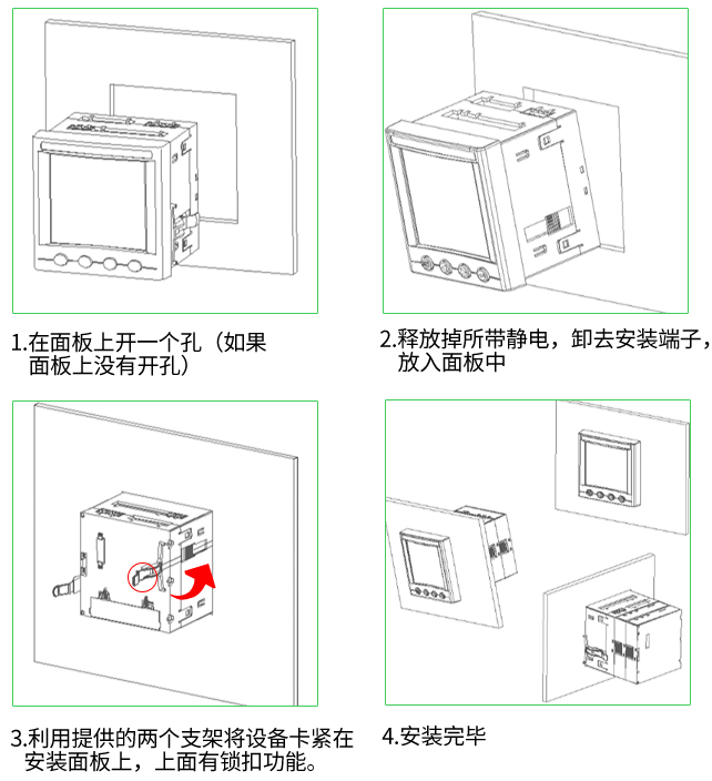 四、产品功能该系列仪表能测量所有的常用电力参数,如三相电流、电压,有功、无功功率,电度,谐波等,并具备完善的通信联网功能,非常适合于实时电力监控系统。