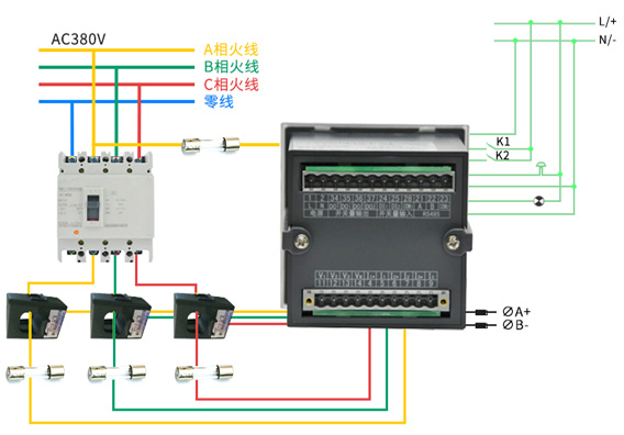 具体型号:ACR220E(L)技术要求:输入电压三相AC380V;电流变比100A/5A;接线方式三相四线;准确度0.5级。通讯协议:RS485接口 Modbus/RTU协议
