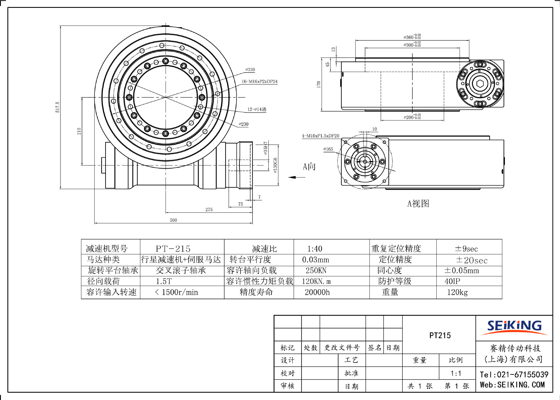 1、PT系列重载型中空旋转平台内部采用环面包络滚子结构,凸轮输入、转轴输出,能提任意运动,可实现高精度和高负载,具有高速性及平稳性的高输出驱动;