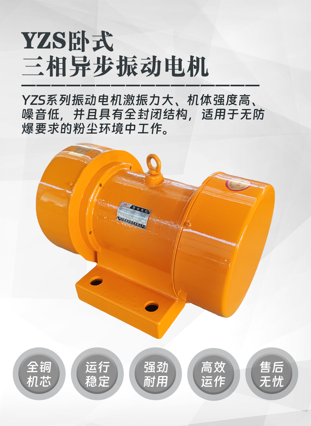 YZS系列滨河卧式三相异步振动电机是一种广泛应用于各种工业领域的振动设备驱动装置,以下是其详细介绍: