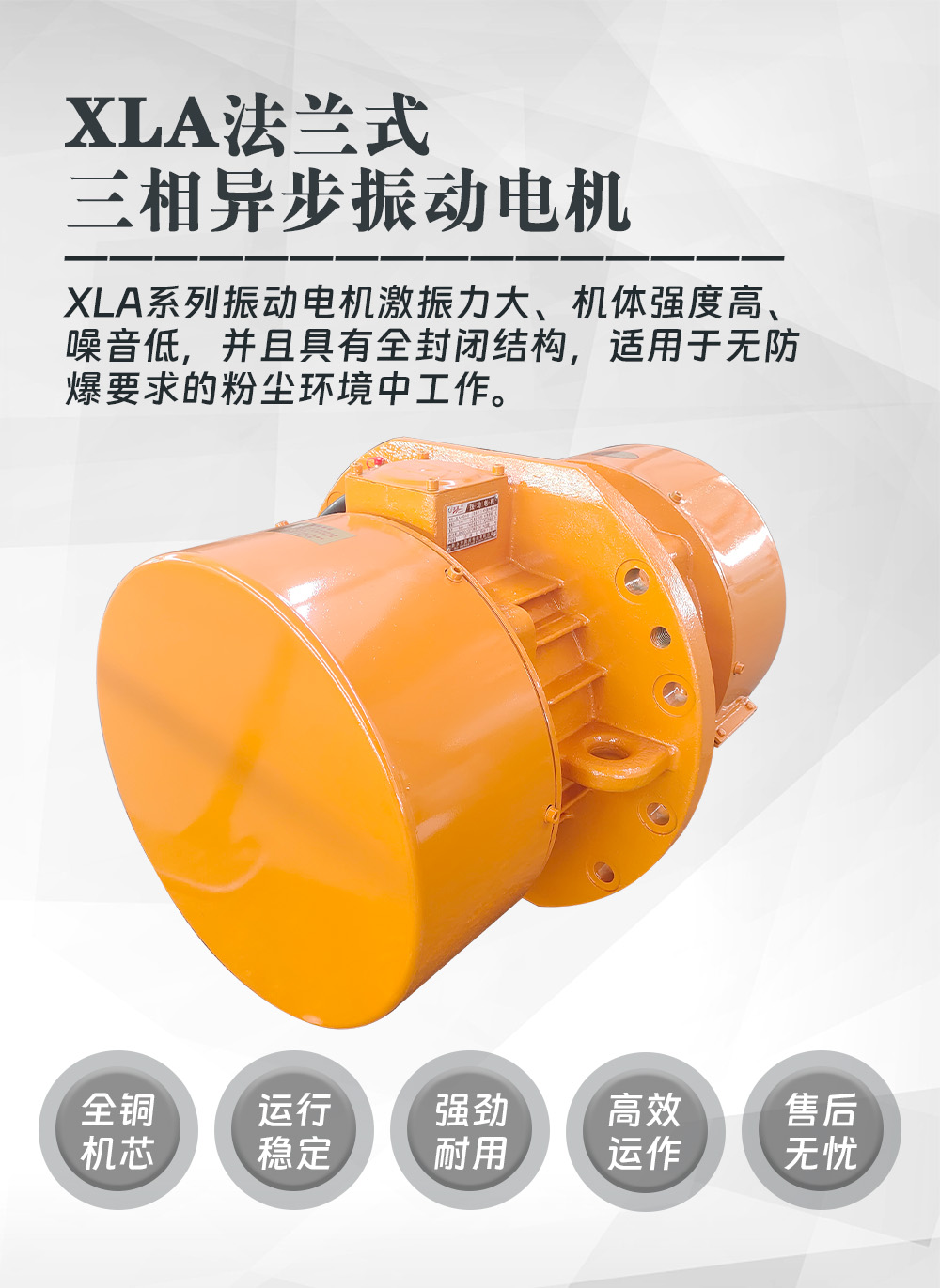 滨河振动电机XLA系列法兰式侧板振动电机是一种可靠的振动电机,广泛应用于矿山、冶金、煤炭、电力、化工、建材等行业。以下是其详细介绍:
