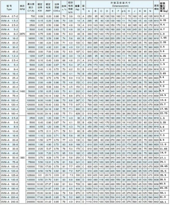 XVM-A系列振动电机是在双轴伸的转子轴两端各安装一组可调偏心块,利用偏心块旋转产生的离心力得到激振力。振动电机的激振力大、能耗小、噪声低、寿命长。它使用于料仓、料斗、溜槽的仓壁振动,还是自同步直线振动筛、振动给料机、振动输送机等各种振动机械的激振源,是冶金、矿山、煤炭、建材、化工等部门的理想设备,有广泛的应用范围。