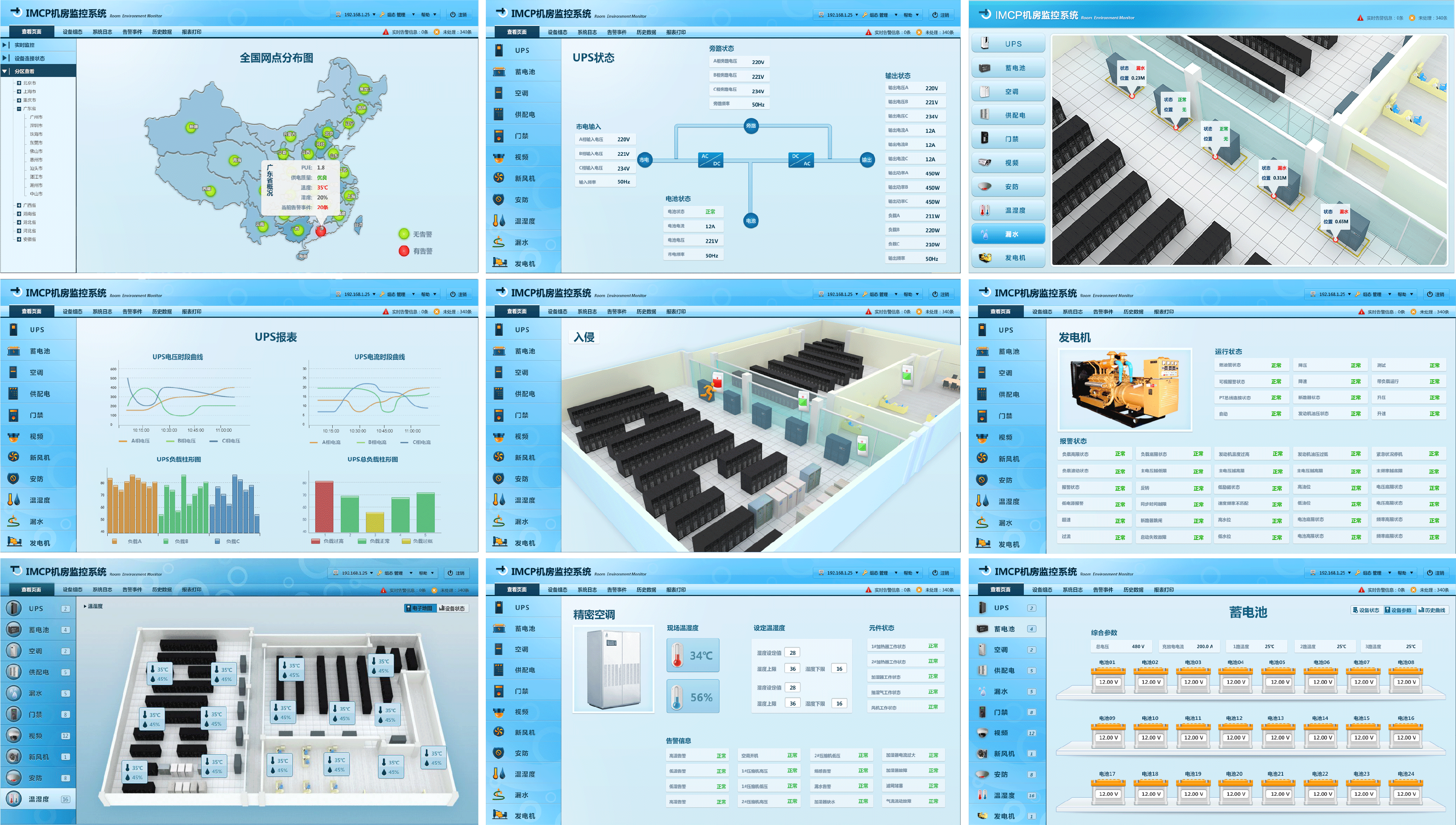 支持3D立体机房布局,提供多种界面风格可选,支持页面现场订制,满足各种应用场景的个性化软件界面的需求,演示界面如下: