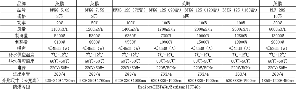 防爆风机盘管机组主要由防爆低噪声电机、防爆接线箱、盘管等组成、。防爆风机将室内空气或室外混合空气通过表冷器进行冷却或加热后送入室内,使室内气温降低或升高,以满足爆炸环境设备和人员的温度调节要求。盘管内的冷(热)媒水由机器房集中供给。