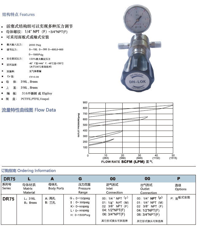 DR75系列中高压背压阀,不锈钢活塞压力传输,压力控制准确,用于调节上游压力,适用于纯净气体,标准气体,腐蚀性气体,液体等