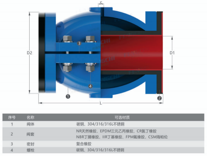空气驱动挠性阀为流体控制问题提供了一个独特且性价比高的解决方案。其秘密在于橡胶阀套-气动夹管阀的过流部件。阀门的驱动或夹紧动作,由作用在套管上的带压空气或液体完成。阀体作为一个内置的驱动装置,省去了昂贵的气动/液动/电动执行器。通过控制阀体和套管简的环形空间里的空气压力,我们可以开关或调节阀门。气源压力大约高于管线压力2bar,就可以使阀门关闭。套管的弹性允许阀门在有残存颗粒时零泄漏关闭,避免了损坏阀门,密封区域相当于95%的阀门长度。没有阀座、密封填料需要更换,没有间隙和死角会滞留妨碍阀门操作的碎块。挠性阀的抗磨损能力是的,当阀门全开时,它就像管线中的一段管子一样。挠性阀应用于不易到达的位置或恶劣环境中,因为阀门没有外部连接、手柄、活塞或旋转部件,从而不会因此带来故障停机。