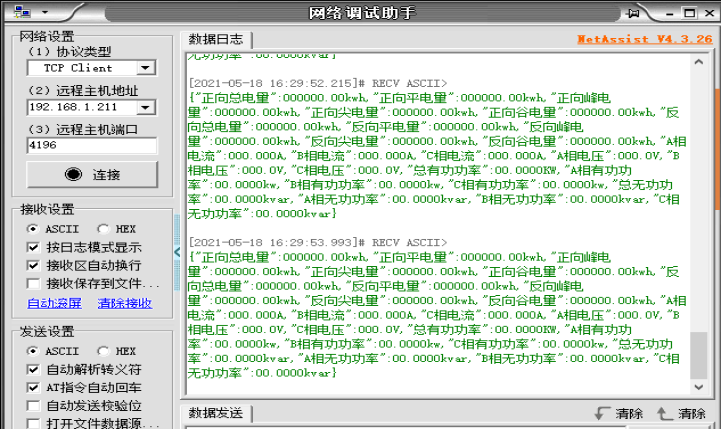 可采用网络调试助手NetAssist进行接收测试。