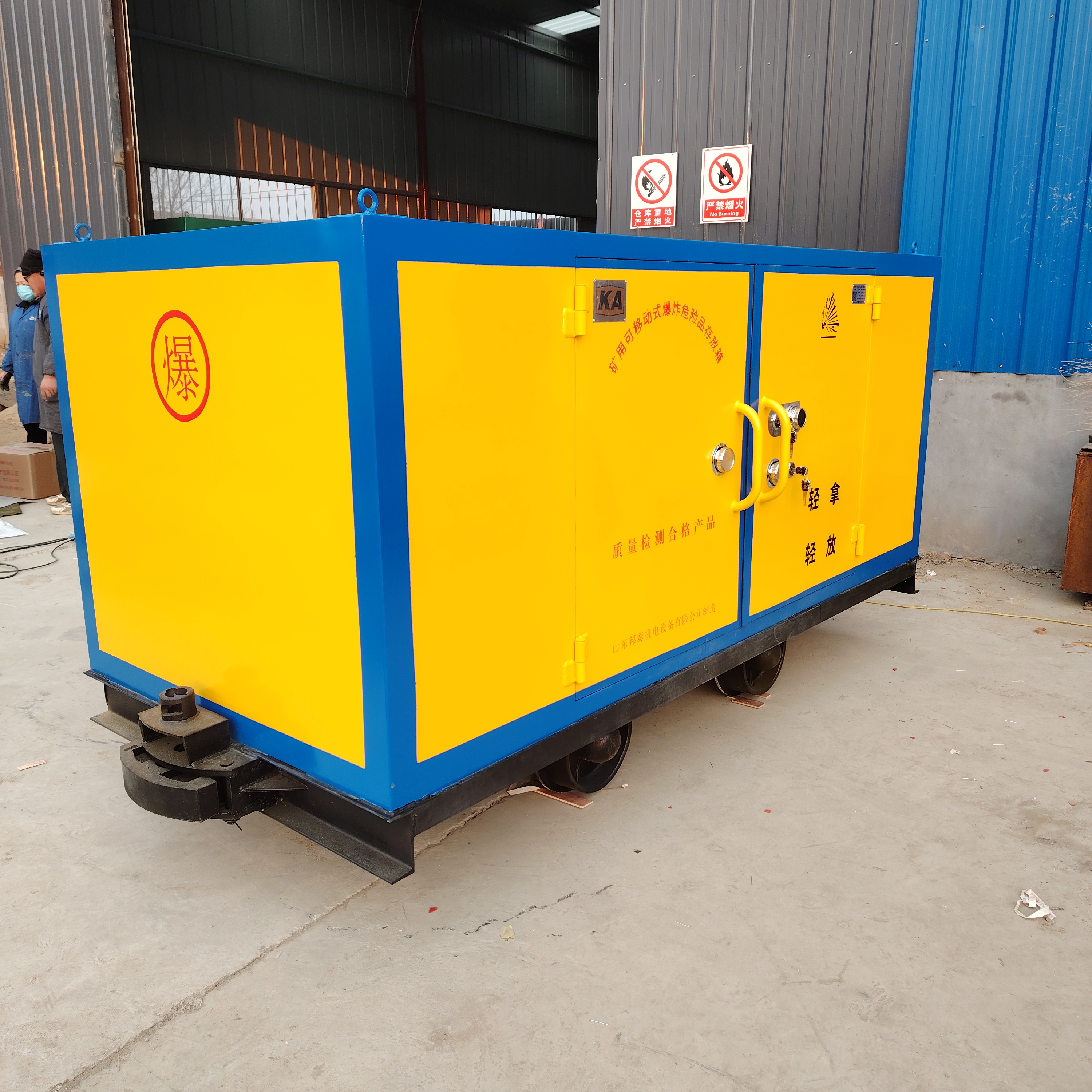 国标产品除以上资质要求外,针对产品的材质也有规定:车箱外体采用6.0mm-8.0mm的防爆钢板,内部是10.0mm绝缘木板和地铺铺设的2.0mm防静电垫,四周还铺有防静电阻燃毡。
