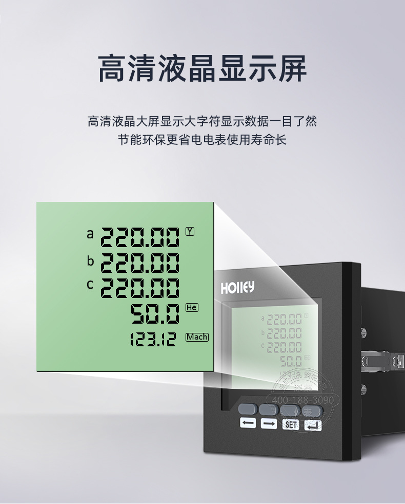 HL624E系列电力仪表,是针对电力系统、工矿企业、公用设施、智能大厦的电力监控需求而设计的。它能高精度的测量所有常用的电力参数,如三相电压、三相电流、有功功率、无功功率、频率、功率因数、四象限电能、谐波测量、复费率功能等;分别有可视度高的LCD和高亮的LED数码管来显示仪表测量参数和电网系统的运行信息,仪表面板带有四个编程按键,用户可现场方便的实现显示切换、仪表参数编程设置,具有很强的灵活性。HL624E系列仪表有多种扩展功能模块可供选择:RS485的数字接口可实现仪表组网通讯功能;2路电能脉冲输出和4(2)路模拟量(0~20mA/4~20mA)输出功能可实现电能和电量的变送输出功能;4路开关量输入和4路开关量输出功能可实现本地或远程的开关信号监测和控制输出功能(“遥信”和“”功能),可组合实现多个电量参数报警及自动控制功能。