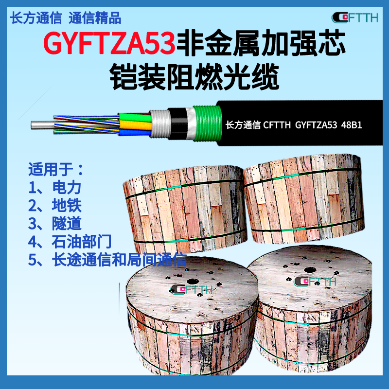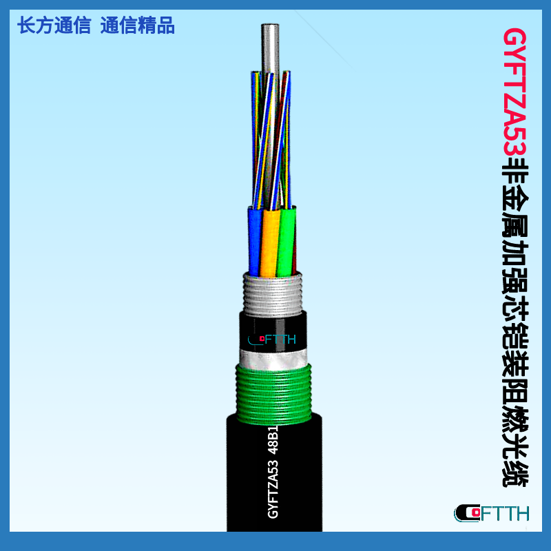 144芯GYFTZA53非金属加强芯铠装阻燃光缆 电力通信光缆管用30年