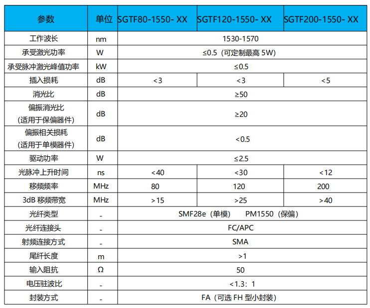 “XXX”-表示工作频率;“XXXX”-表示光波长;“XX”-表示光纤类型, 单模光纤用“1”表示,单模保偏光纤用“1P”表示。