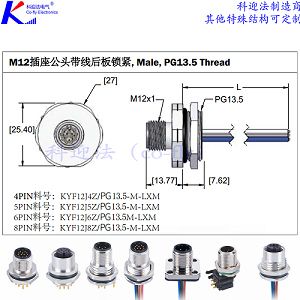 轨道交通M12法兰插座,车载抗震航空PCB插座,上海科迎法电气科技有限公司,,专注于电气连接产品的研发与生产,螺纹接口M12,M8连接器和插座的实现了批量生产与供货。