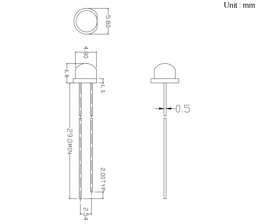 1、5mm草帽led灯珠包括5mm草帽灯珠单色,双色和三色灯珠3大系列;