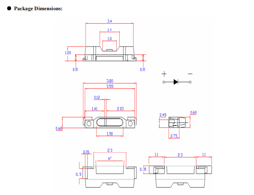 产品尺寸:3.8*0.6*1.2mm 电流:20MA