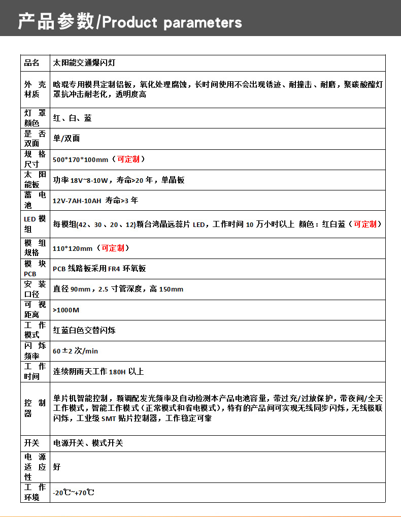 蓄电池:太阳能专用深循环阀控式,充放次数>500次,免维护正常使用3年以上