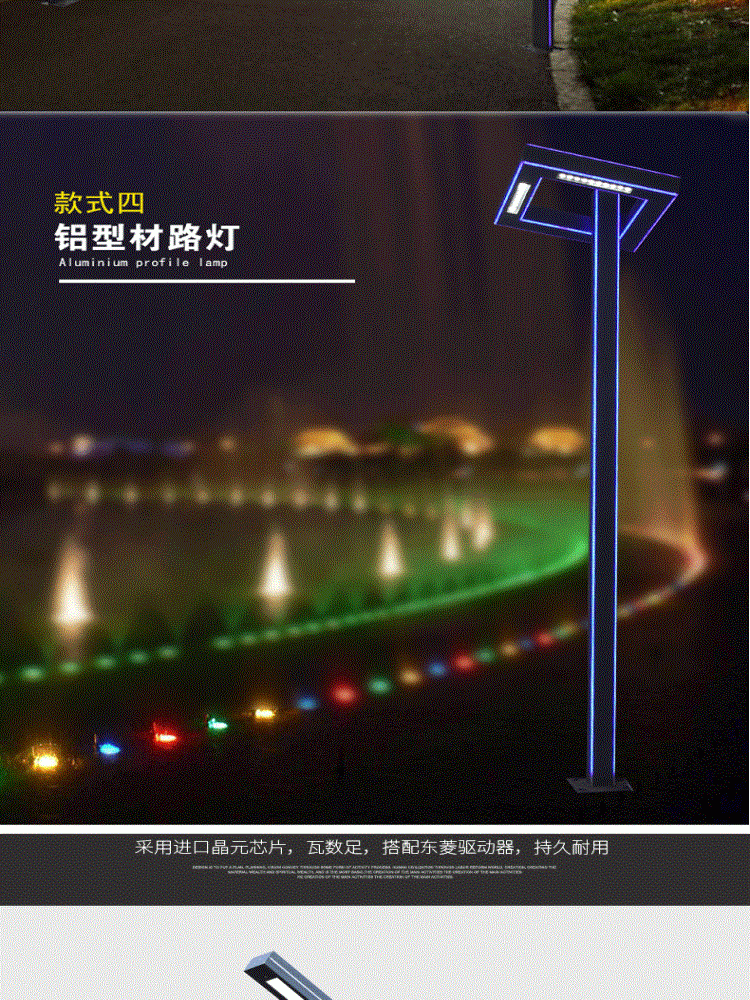 铝型材景观灯,绿色节能无污染,大方美观,工程,应用广泛:城市街道、公园广场、豪华别墅、庭院、学校、公路马路,款式多样。