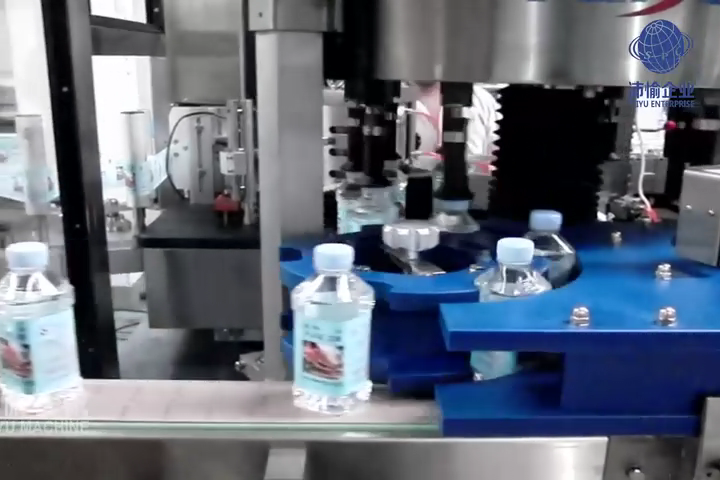 设备将热熔胶通过加热胶辊在标签首端和末端分别配上一条狭长的热胶条,当容器旋转时标签被拉紧并且首末端牢固的黏贴。生产过程中电脑和伺服电机控制的与标签长度相匹配的高速输送辊不断从卷盘上拉取标签带,并由切割装置连续准确对标签进行切割。