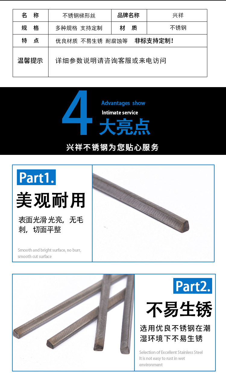 本公司创建于2003年10月份,前身是兴化市瑞祥不锈钢制品厂。生产不锈钢丝、异型材料及不锈钢法兰、车床非标件专、CNC业厂家,并已通过GB/T19001-2000质量管理体系认证。