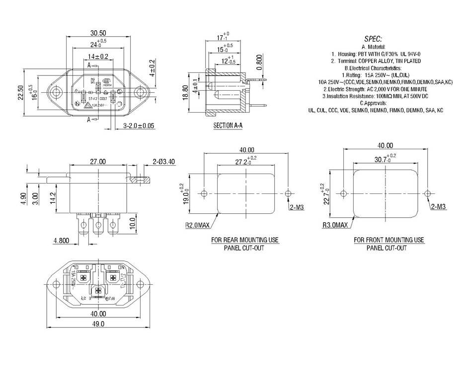 | 壳体材质: | PA/PC/PBT | 孔位数: | 3pin |