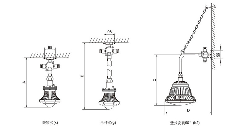 ● 适用于ⅡA、ⅡB、ⅡC类爆炸性气体环境;
