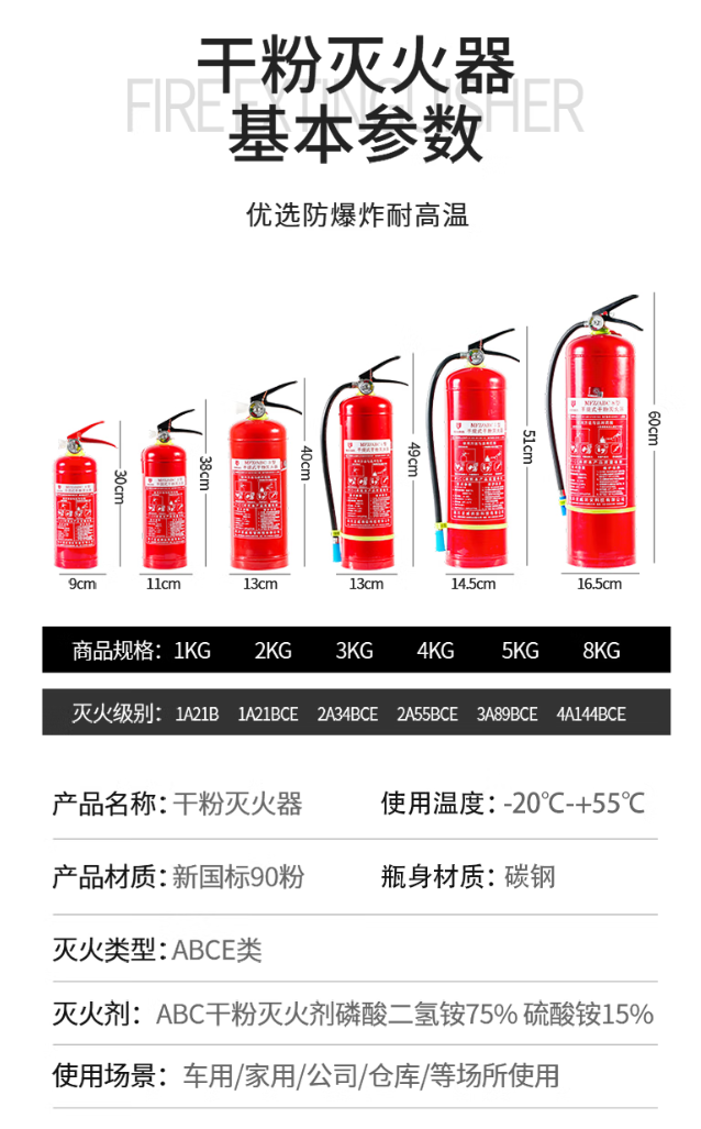 高强度碳钢瓶体,经过10万次抗压测试,防腐蚀涂层处理,使用寿命长达10年,比普通灭火器更抗造!