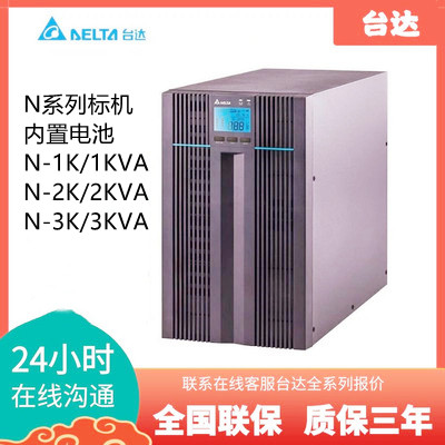 台达 UPS 电源 N - 1K 是一款单相 220V、1KVA 标称容量且满载功率 900W 的塔式单进单出 UPS 机头,采用双变换纯在线式设计,适配家用办公、小型商业等多场景,核心参数与实用特性如下,能满足设备稳压和断电应急需求