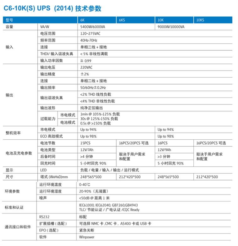 整体来看,同功率下带 “S” 的机型(C6KS、C10KS)功能更全面,扩展能力更强,适合复杂场景;无 “S” 机型(C6K、C10K)则侧重基础供电保障,性价比更高,适配普通负载场景。