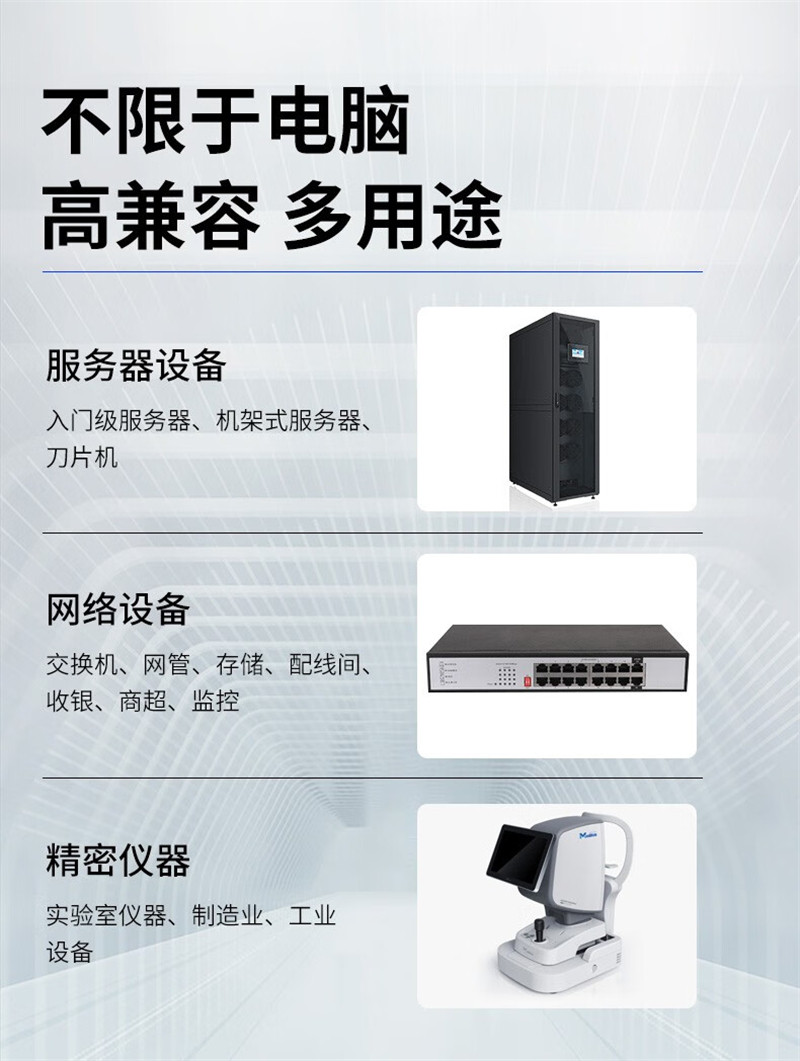 * 兼容性强:可以与各种类型的负载设备兼容,适用于各种场合,如办公楼、工厂、医院等。